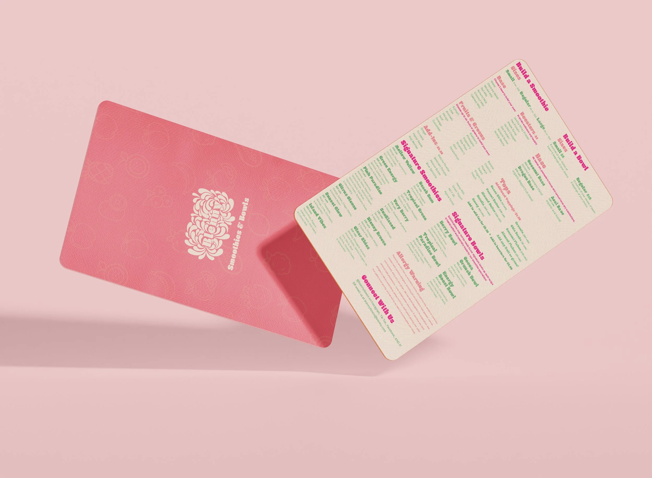 Blenny, the swirly smoothie shop, is based on the bold and playful font Blenny. Using simple fruit illustrations and incorporating the pinks and greens found in many berries, the brand really came together naturally.