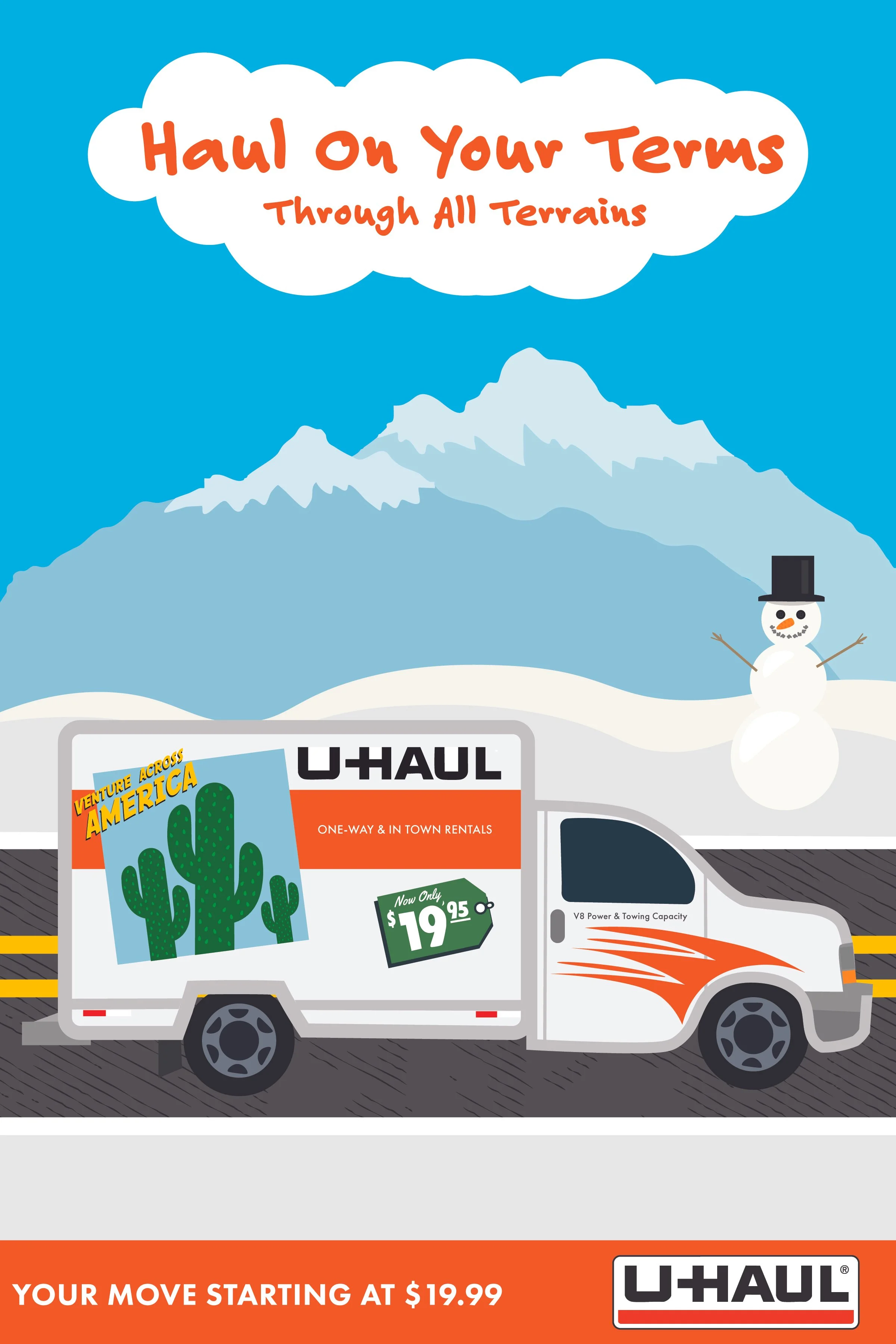 Simple, clean, and bold U-Haul trucks take their journey through the country from magazine spreads to billboards in the Big Apple.